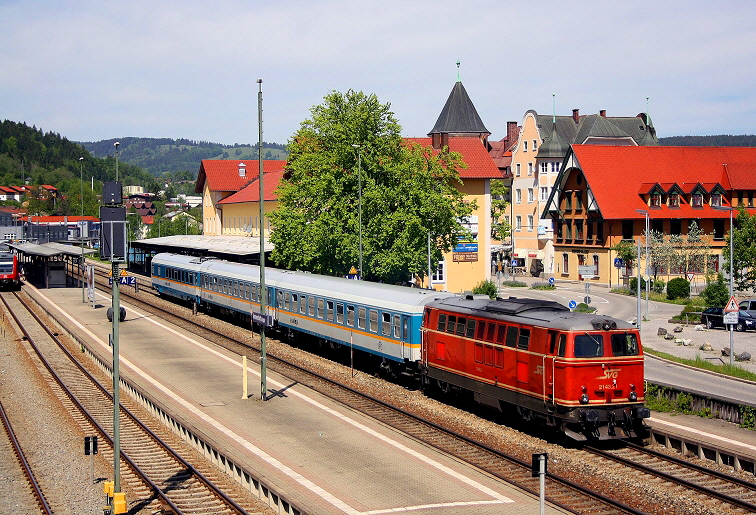 Im Bahnhof von Immenstadt im Allgäu zweigt die Nebenbahn in den bekannten Ferienort Oberstdorf am Fuß des berühmten Nebelhorns (2.224 m) ab.