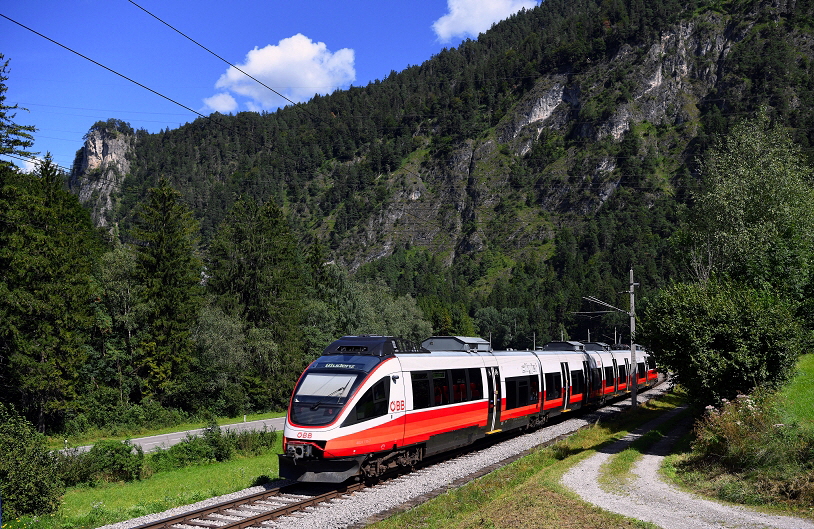 Kurz vor der Abfahrt nach Bludenz wartet der ÖBB Talent 2 Triebwagen im Bahnhof von Schruns auf die letzten Fahrgäste. Die Aufnahme entstand am 17. August 2020. |