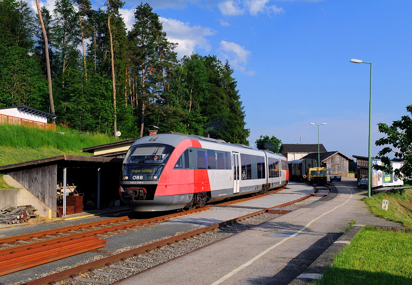 Am frühen Nachmittag des 08. Juni 2019 erreicht der 5022 018-3 (Desiro) den Bahnhof von Haslach an der Mühl. Das Zentrum von Haslach liegt rund drei Kilometer vom ÖBB Bahnhof Haslach entfernt. |