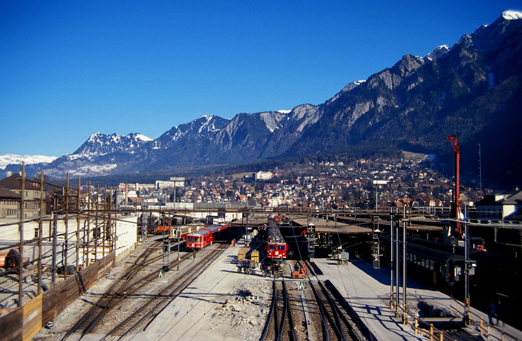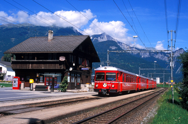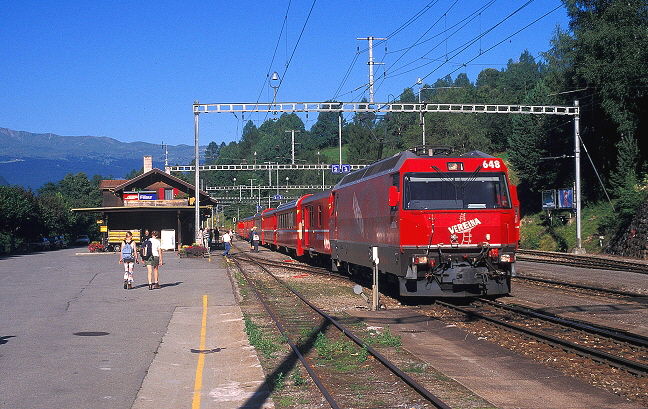 Zu jeder vollen Stunde (Fahrplanänderungen vorbehalten), kreuzen in Filisur die Züge auf der Albulabahn. Dazwischen gibt es immer mal wieder den ein-oder anderen Güterzug. Die Gemeinde Schmitten hat dem Aussichtspunkt eine Bank spendiert. So lässt es sich hier eine Weile gut aushalten.