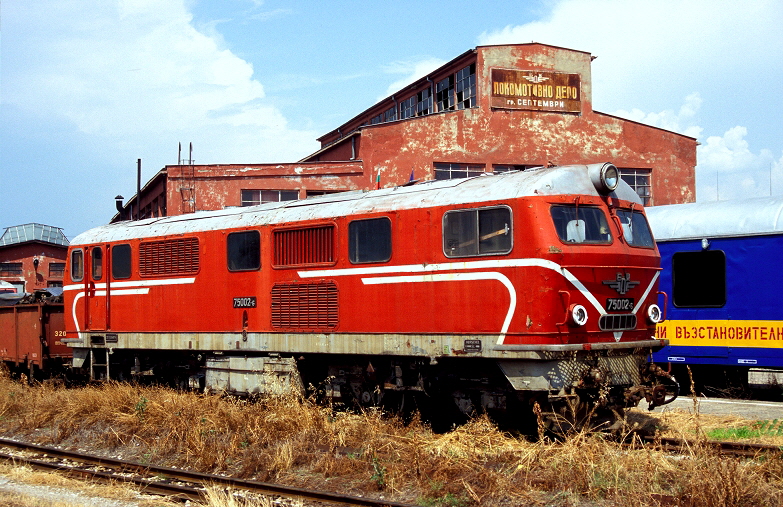 Im Bahnhof Septemvri gelang Patrick Aulbach ein Bild mit der normalspurigen Diesellok 92.003 (baugleich mit der V 60 der ehem. Deutschen Reichsbahn) und der Schmalspur- Verschublok 81.002. Im Hintergrund sieht man das Gebäude des Bahnhofes. Besondere Beachtung verdient auch die Gleislage im Vordergrund !! |