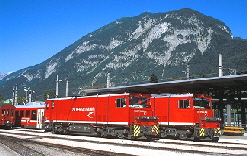 Am Morgen des 07. Februar 2000 erreicht die VL 23 der Steiermärkischen Landesbahnen (StLB) mit einem kurzen Güterzug den Bahnhof von Fügen-Hart. Da zu dieser Zeit akuter Lok Mangel bei der Zillertalbahn herrschte, konnte man von der kurz zuvor eingestellten Thörlerbahn diese Lok der StLB ausleihen (Aufnahme: Ralf Kirion). |